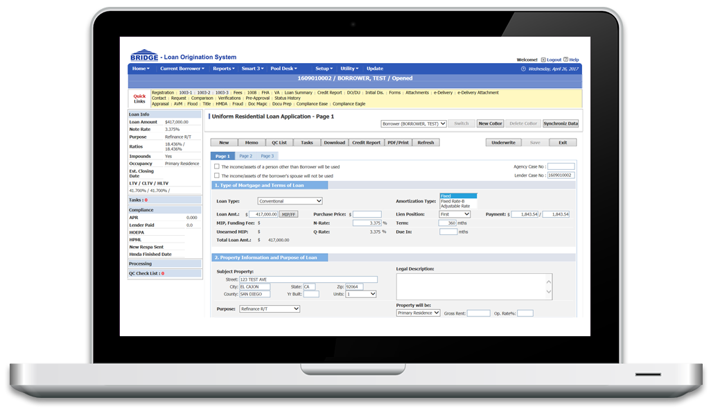 Bridge was created to streamline processing and give Bankers, Lenders, Correspondents & Brokers the ability to track their loans from submission to servicing. Bridge allows users to completely price & lock their loans, import & auto-populate entire 3.2 files, order appraisals, upload supporting documents & submit to underwriting with just a few clicks. System notifications keep you up to date throughout the loan process, even sending you automatic messages whenever there has been a change in status.